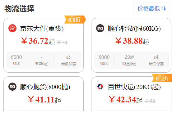 寄大件想要便宜,不能单在网上找收费标准,因为各地的单价略有差别,上文以湖南省内举例,可以看到京东重货反而最便宜,其实京东发跨省大件单价就没那么低了,想要选择更便宜的物流公司下单,建议用“寄半折”这类快递比价平台,输入收寄地址和重量,即可快速获取各主流快递物流公司的折扣报价,免得自己计算不清,徒增琐事。寄快递比价请认准寄半折官网:www.jibanzhe.com
